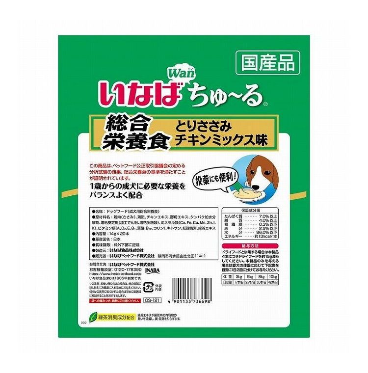 【2個セット】 いなば ちゅ~る 総合栄養食 とりささみ チキンミックス味 14g×20本 x2【ポイント10倍】 【送料無料】