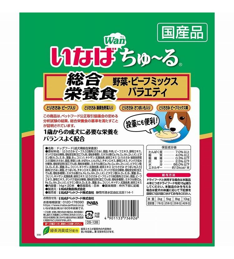 【2個セット】 いなば Wanちゅ~る 総合栄養食 野菜・ビーフミックスバラエティ 14g×20本 x2【ポイント10倍】 【送料無料】