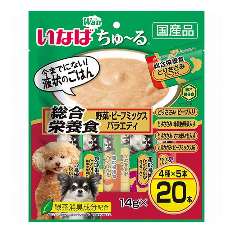【4個セット】 いなば Wanちゅ~る 総合栄養食 野菜・ビーフミックスバラエティ 14g×20本 x4【ポイント10倍】 【送料無料】