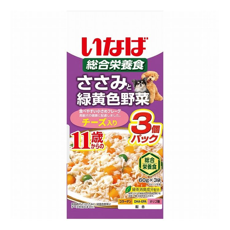 【4個セット】 いなば ささみと緑黄色野菜 11歳からのチーズ入り 60g×3袋 x4【ポイント10倍】