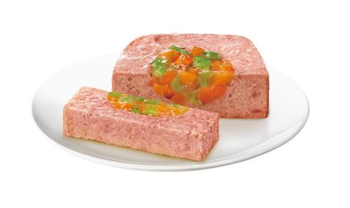 肉類(ラム、チキン、ビーフ、ポーク、家禽等)、野菜類(にんじん、いんげん)、米、ひまわり油、チコリー繊維、ビートパルプ、たまご、ディル、マリーゴールド、トマトパウダー、ビタミン類、ミネラル類、タウリン、増粘多糖類、リン酸塩(Na)