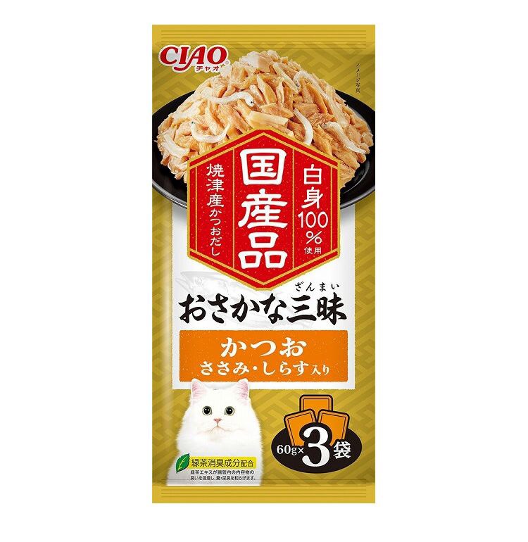 【16個セット】 CIAO おさかな三昧 かつお ささみ・しらす入り 60g×3袋 x16【ポイント10倍】 【送料無料】