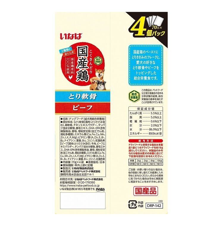 ・国産鶏のペーストにとりささみのフレークと愛犬の好きなとり軟骨やビーフをトッピングした総合栄養食です。