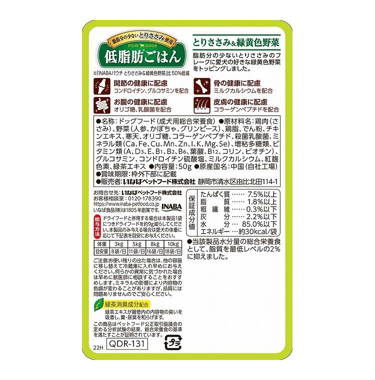 【48個セット】 いなば 低脂肪ごはん とりささみ&緑黄色野菜 50g x48【ポイント10倍】 【送料無料】