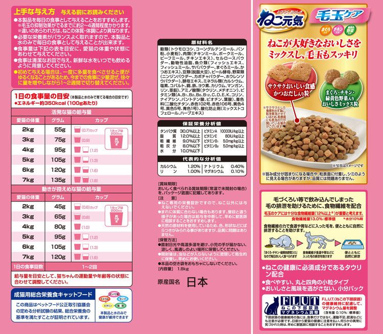 ユニチャーム ねこ元気 毛玉ケア まぐろ・チキン・緑黄色野菜入り 1.8kg【ポイント10倍】