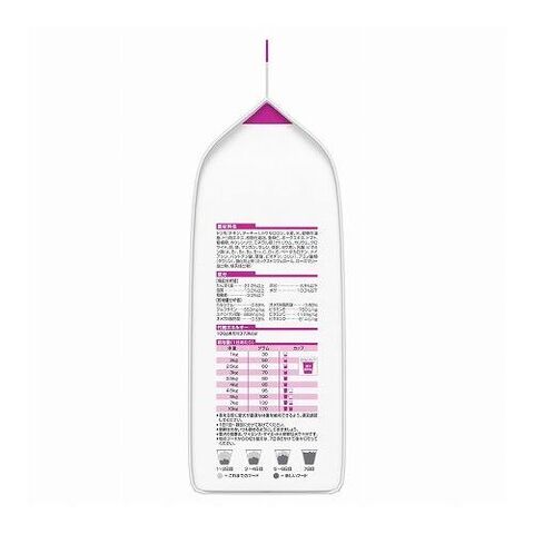 トリ肉(チキン、ターキー)、トウモロコシ、小麦、米、動物性油脂、トリ肉エキス、植物性油脂、亜麻仁、ポークエキス、トマト、柑橘類、ホウレンソウ、ミネラル類(ナトリウム、カリウム、クロライド、銅、鉄、マンガン、セレン、亜鉛、ヨウ素)、乳酸、ビタミン類(A、B1、B2、B6、B12、C、D3、E、ベータカロテン、ナイアシン、パントテン酸、葉酸、ビオチン、コリン)、アミノ酸類(タウリン)