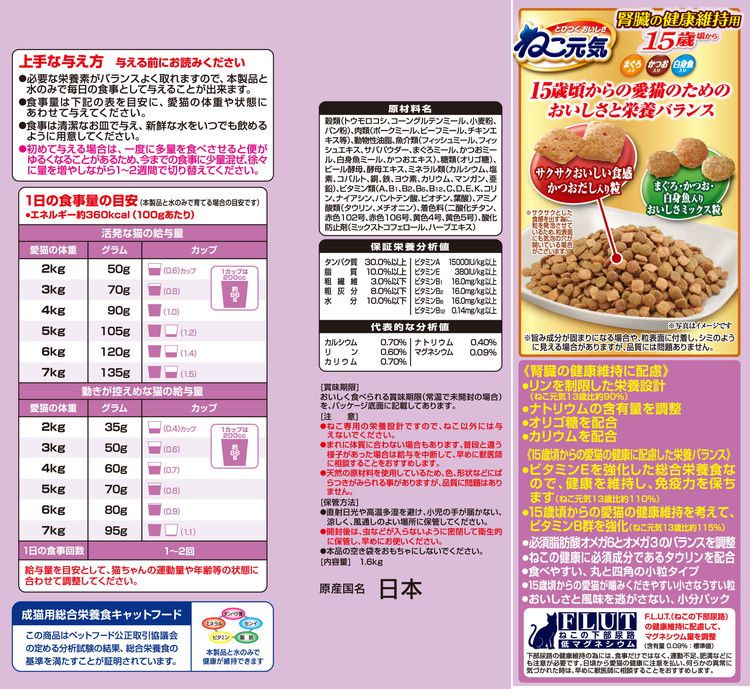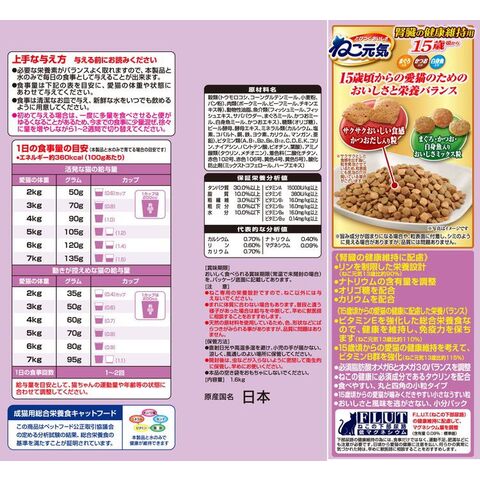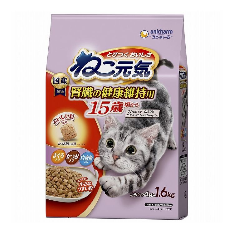 ユニチャーム ねこ元気 腎臓の健康維持用 15歳頃から まぐろ・かつお・白身魚入り 1.6kg【ポイント10倍】