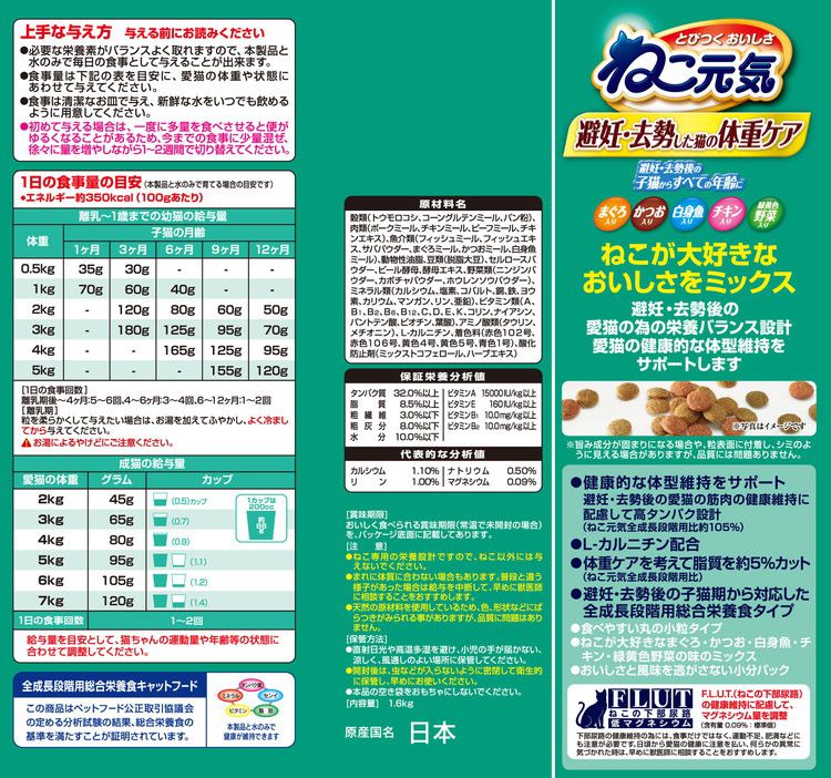 ユニチャーム ねこ元気 避妊・去勢した猫の体重ケア まぐろ・かつお・白身魚・チキン・緑黄色野菜入り 1.6kg【ポイント10倍】
