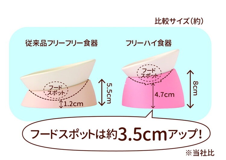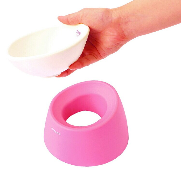 「ペットの種類を選ばず、食べやすく」というコンセプトの傾き自在の食器!割れにくく洗いやすいプラ食器です。足付きなので器だけでも使用できます。容量約150ml