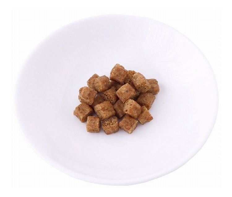 肉類(鶏ささみ、鶏レバー)、小麦粉、まぐろ、タピオカ澱粉、乳酸菌、鶏コラーゲン、魚軟骨抽出物、グリセリン、トレハロース、膨張剤、酵母抽出物、調味料、食塩、ポリリン酸Na、乾燥酵母細胞壁、乳糖果糖オリゴ糖粉末、タウリン、グルコサミン