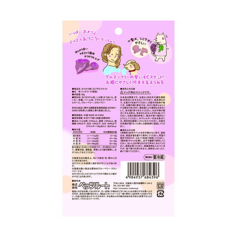 タピオカでん粉、いも類(さつまいも、紫いも)、砂糖、パーム油、ヤギミルクパウダー、セルロース、ブルーベリー、クランベリー