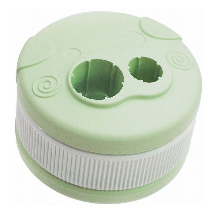 1.上フタのブタちゃん耳が上向き、下フタはブタちゃんシッポを上向きにし、大小同じ穴にるよう調整します。2.ガムの太さに合った穴に底までしっかり入れます。3.両手で本品を握ってそれぞれ矢印の方向に、上(右手)は時計回り、下(左手)は反時計回りに固く閉まるまで回します。※本品を持ってガムがしっかり固定されてるか確認してからご使用ください。ガムが動いたり抜けたりする場合は再度セットしてください。※工場出荷時はあらかじめセットされた状態になっています。