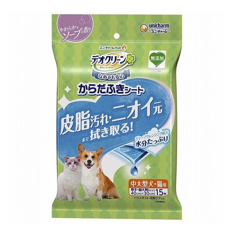 ユニチャーム デオクリーン からだふきシート 中大型犬・猫用 やわらかなソープの香り 15枚【ポイント10倍】