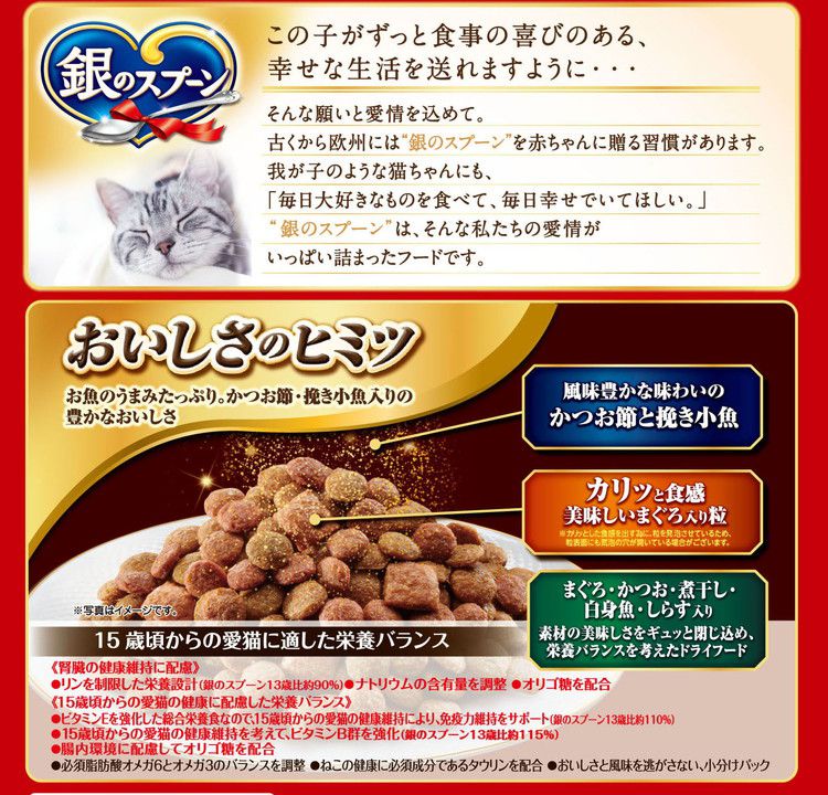 ユニチャーム 銀のスプーン 贅沢うまみ仕立て 15歳頃から まぐろ・かつお・煮干し・白身魚・しらす入り 1.3kg【ポイント10倍】
