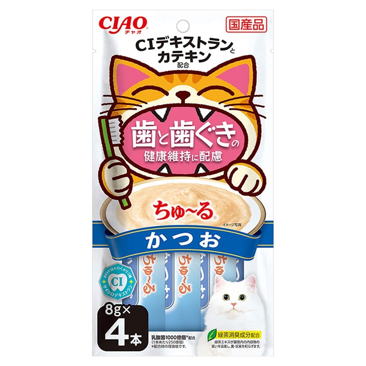 いなばペットフード CIAO ちゅ~る 歯と歯ぐきの健康維持に配慮 かつお 8g×4本【ポイント10倍】
