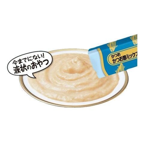 かつお、かつお節エキス、糖類(オリゴ糖等)、植物性油脂、増粘安定剤(加工でん粉、増粘多糖類)、ミネラル類(Na、P、Cl)、調味料(アミノ酸)、ビタミンE、緑茶エキス、カラメル色素]