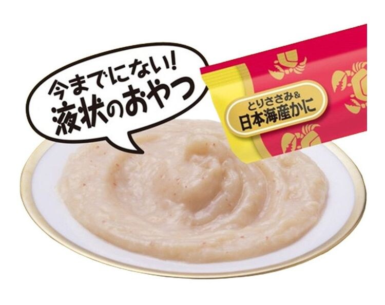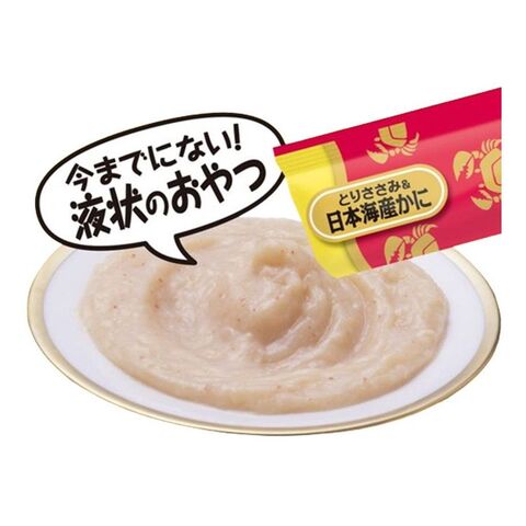 鶏肉(ささみ)、かに、カニエキス、タンパク加水分解物、糖類(オリゴ糖等)、植物性油脂、増粘安定剤(加工でん粉、増粘多糖類)、ミネラル類(Na、P、Cl)、調味料(アミノ酸)、ビタミンE、緑茶エキス