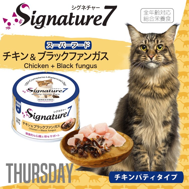 ・オールステージ・猫用総合栄養食「シグネチャー7」素材のエキスが溶け込んだジューシーなパティタイプ。