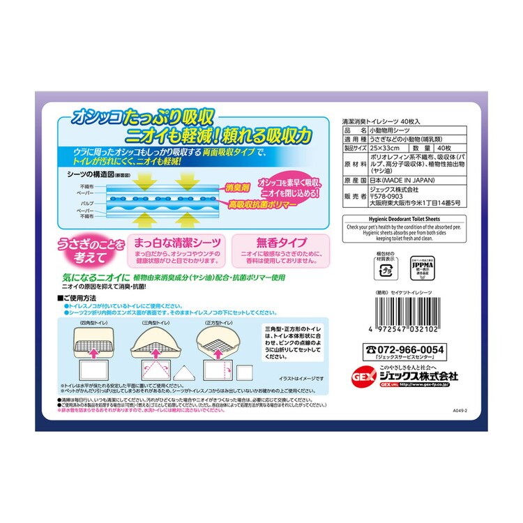 ジェックス トップブリーダー 清潔消臭トイレシーツ 40枚入 うさぎ用 トイレシーツ ウサギ 子うさぎ 小動物 トイレシート トイレ用シート GEX【ポイント10倍】