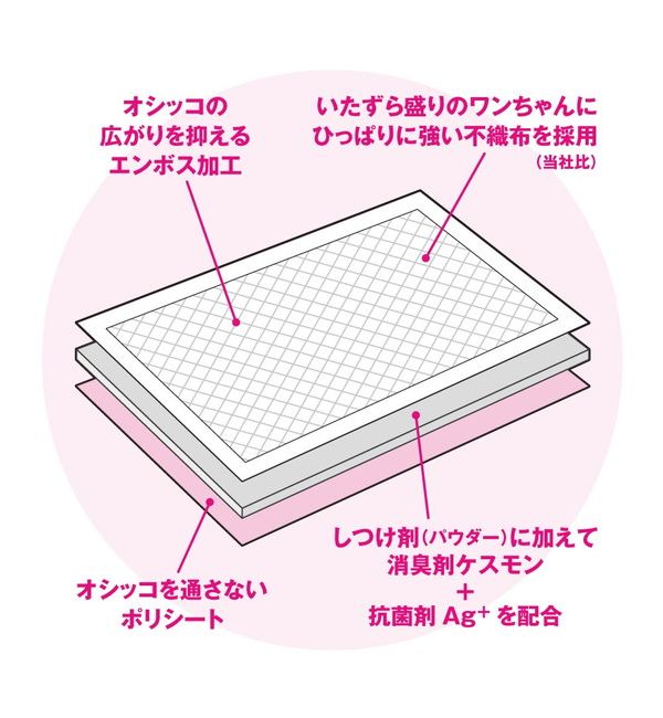 ・おしっこを通さないポリシートとオシッコの広がりを抑えるエンボス加工