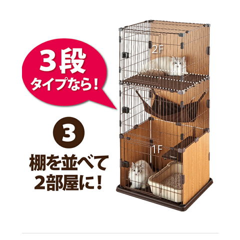 棚を並べ変えることが出来ます。棚を並べると、2部屋仕切りの間仕切りになります。多頭飼育にもおすすめです。