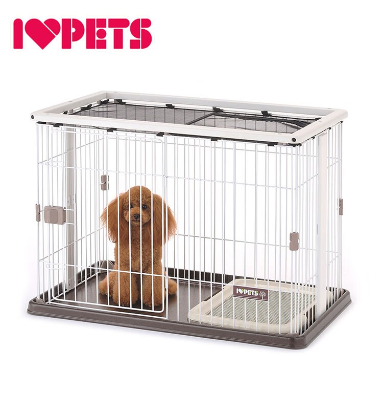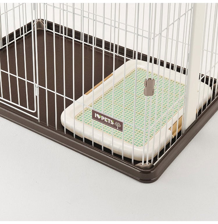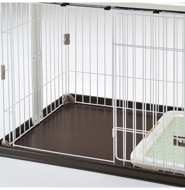・天井面と両サイドに木のフレームを施した、お部屋に調和しやすいデザインの犬用サークルです。