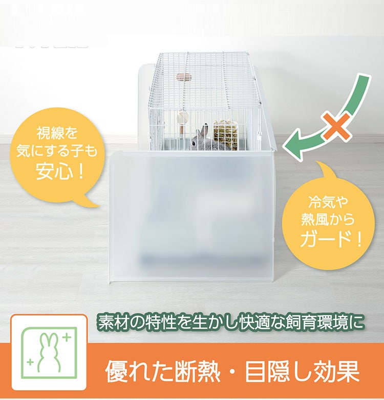 ・高い壁で、糞尿や牧草の飛散をガード。目隠し、冷気や熱風から小動物を守れ、暑さや寒さに弱い子にも最適です。