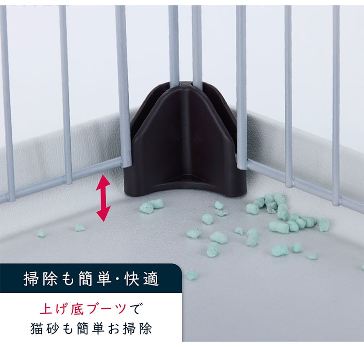 ・お手入れしやすい上げ底ブーツでトレーとフェンスの隙間に入った猫砂や抜け毛も簡単お掃除。
