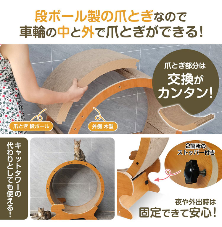 車輪の本体は段ボール製の爪とぎなので、車輪の中と外で爪とぎができます。