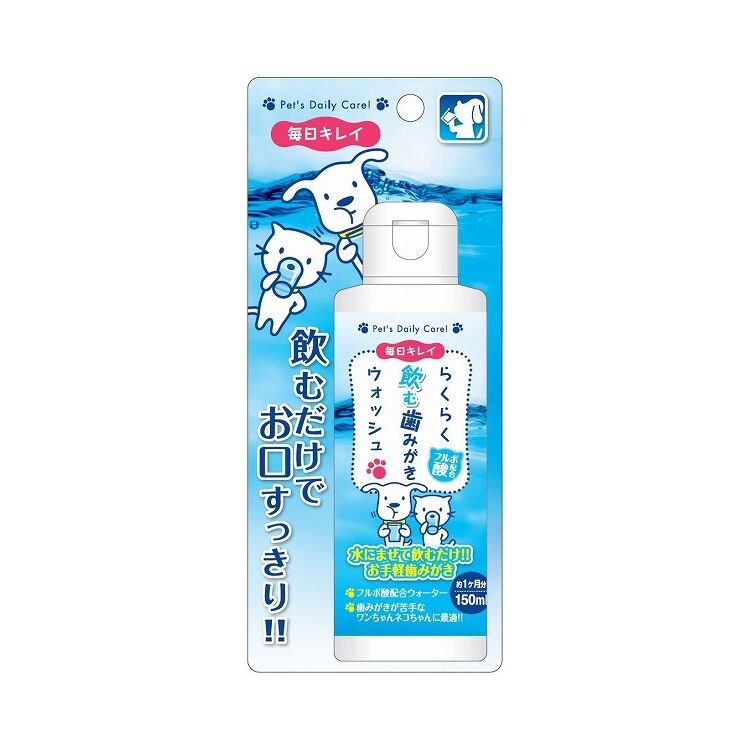 水に混ぜて飲むだけなのでとってもらくらく簡単。歯ブラシや歯みがきシートでの歯みがきが苦手なワンちゃんネコちゃんに最適です!!ノンフレーバーだからすっきり歯みがきができます。配合のフルボ酸は天然成分なので安心・安全でペットにやさしい飲むタイプの歯みがきです。フルボ酸とは?土壌から抽出した天然成分です。飲料や食品などにも使用されています。約1ヶ月分:150ml。