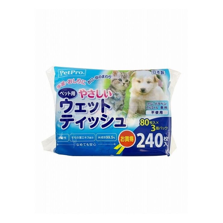 ペットプロ やさしいウェットティッシュ 80枚入x3P