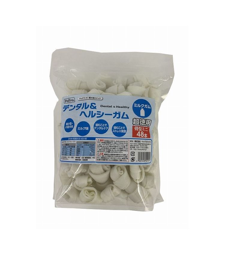 ペットプロ デンタル&ヘルシーガム ミルクガム 超徳用 骨型ミニ 48本入 犬用 犬 おやつ スナック ガム【送料無料】