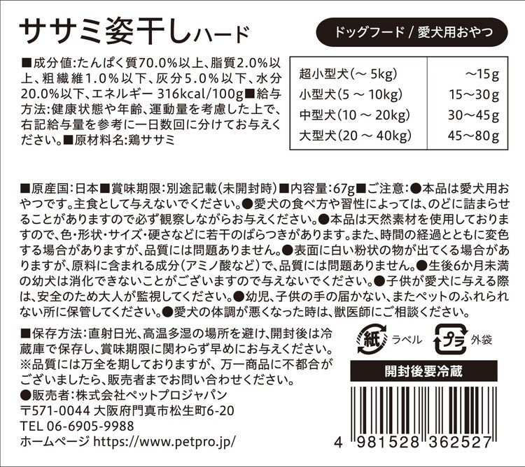 ペットプロ 国産おやつ ササミ姿干しハード 67g 国産 日本製 犬用 犬 おやつ スナック ジャーキー【ポイント10倍】