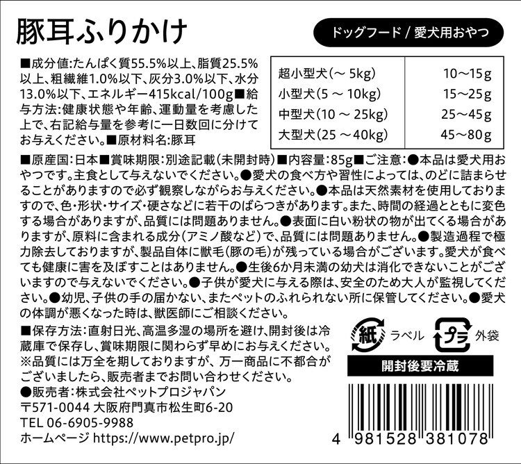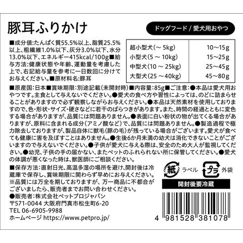 ペットプロ 国産おやつ 無添加 豚耳ふりかけ 85g 国産 日本製 犬用 犬 おやつ スナック ふりかけ トッピング【ポイント10倍】