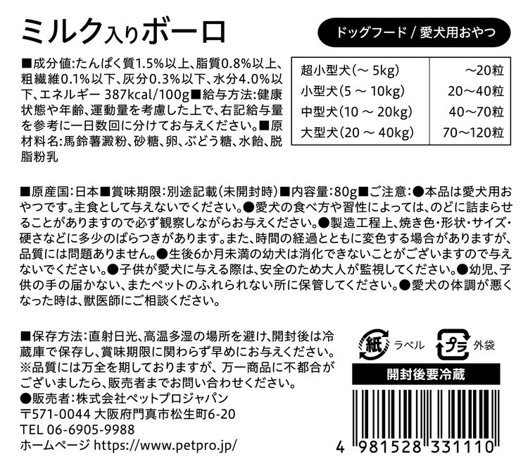 ペットプロ 国産おやつ ミルク入りボーロ 80g 国産 日本製 犬用 犬 おやつ スナック ボーロ【ポイント10倍】