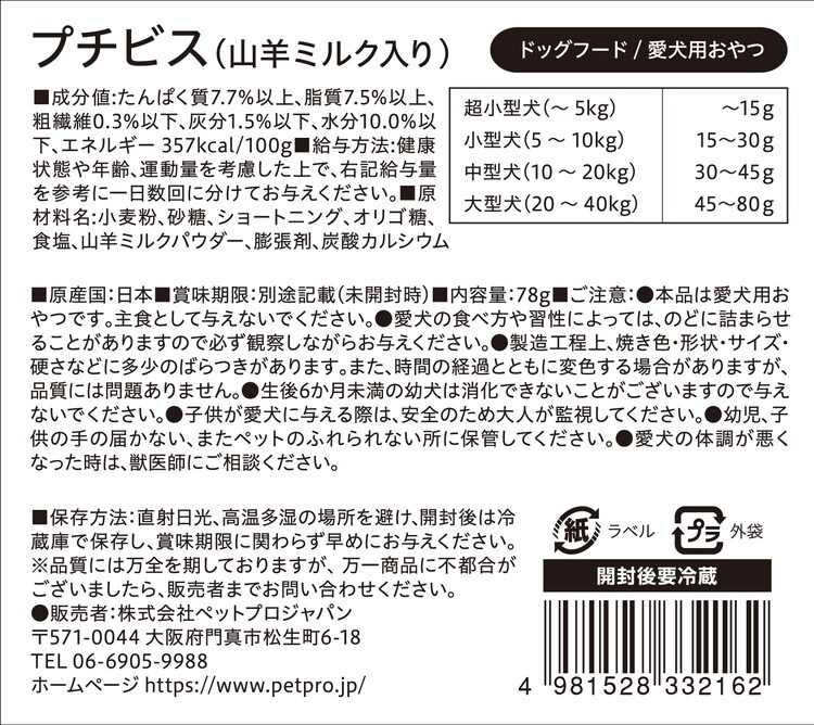 ペットプロ 国産おやつ プチビス 山羊ミルク入り 78g 国産 日本製 犬用 犬 おやつ スナック ビスケット【ポイント10倍】
