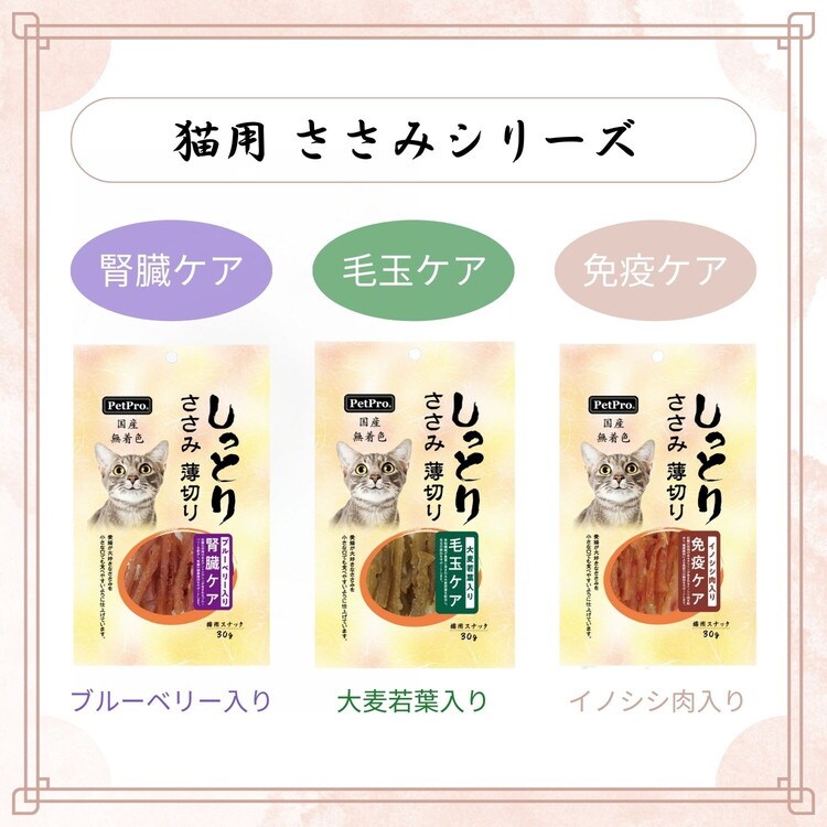 ペットプロ 国産しっとりささみ 薄切り 毛玉ケア 大麦若葉入り 30g【ポイント10倍】