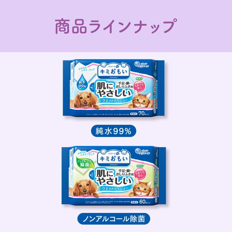 エリエールペット キミおもい ウエットティシュ― ノンアル 60枚×3パック ペット用 ウェットティッシュ 犬用 猫用 ノンアルコール 除菌 大王製紙【ポイント10倍】