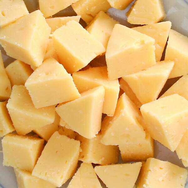 チーズ、でん粉類、小麦粉、ゼラチン、植物油脂、グリセリン、ミネラル類(カルシウム)、プロピレングリコール、増粘多糖類、保存料(ソルビン酸カリウム、デヒドロ酢酸ナトリウム)、酸味料、乳化剤、食用色素(β-カロテン、酸化チタン)、酸化防止剤(エリソルビン酸ナトリウム)、香料