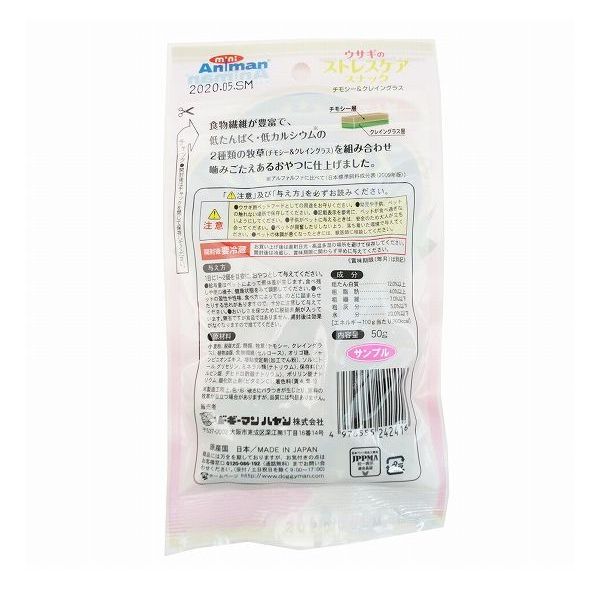 2種類の牧草(チモシー&クレイングラス)を組み合わせ、適度な噛みごたえあるおやつに仕上げました。
