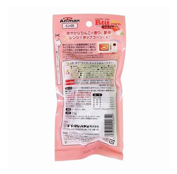 【4個セット】 ミニアニマン ハムスター・リスのプチコーン りんご味 60g x4