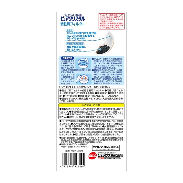 GEX ジェックス ピュアクリスタル 活性炭フィルター 半円 犬用 3個入【ポイント10倍】