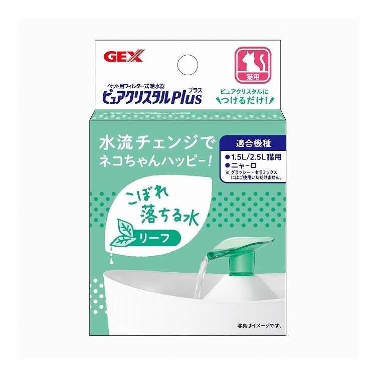 ピュアクリスタルに取り付けて、水流をチェンジ♪「リーフ」はお水がこぼれ落ちます。ネコちゃんの好みに合わせてお選びください。