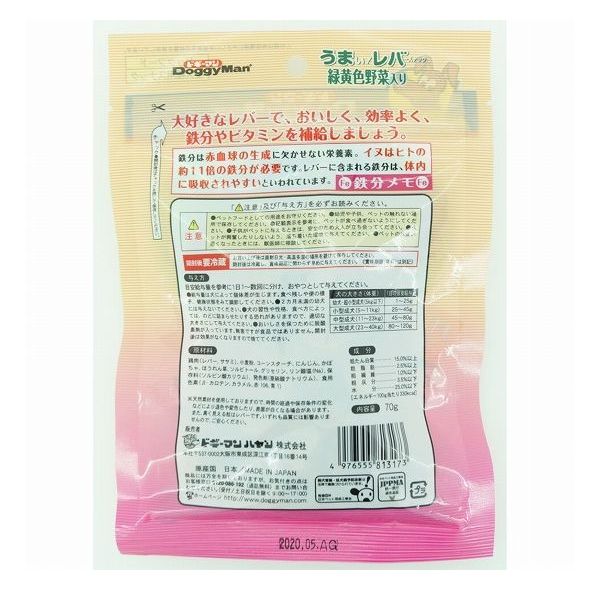 【12個セット】 ドギーマン うまい!レバースナック 緑黄色野菜入 70g x12【送料無料】