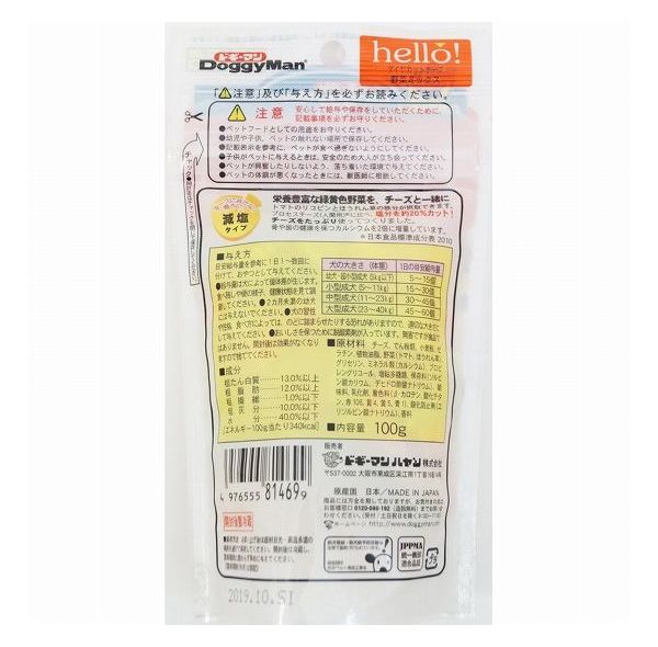 【3個セット】 ドギーマン hello!ダイヤカットチーズ 野菜ミックス 100g x3のレビュー