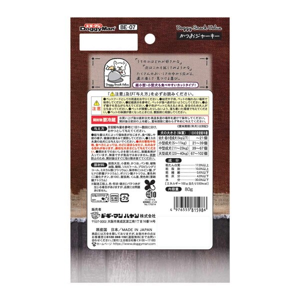 【10個セット】 ドギーマン ドギースナックバリュー かつおジャーキー 80g x10