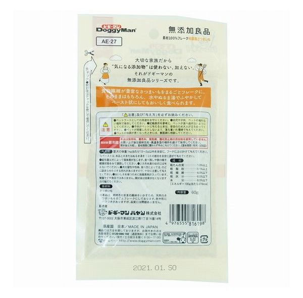 【12個セット】 ドギーマン 無添加良品 素材100%フレーク 純国産さつまいも 60g x12【送料無料】