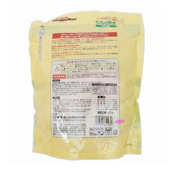 【4個セット】 ドギーマン おなかにやさしいワンワンビスケット 緑黄色野菜 450g x4【送料無料】