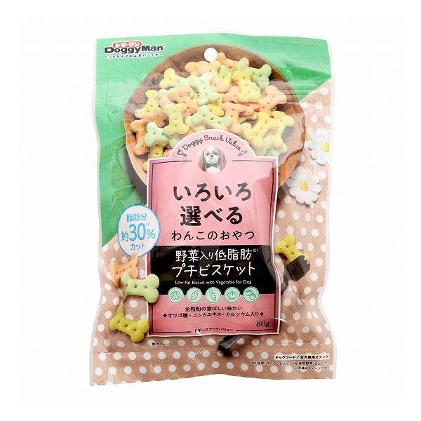 【6個セット】 ドギーマン ドギースナックバリュー 野菜入低脂肪プチビスケット 80g x6