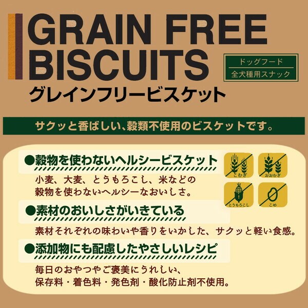 ・小麦、大麦、とうもろこし、米などの穀物を使わずに作ったグレインフリービスケットです。